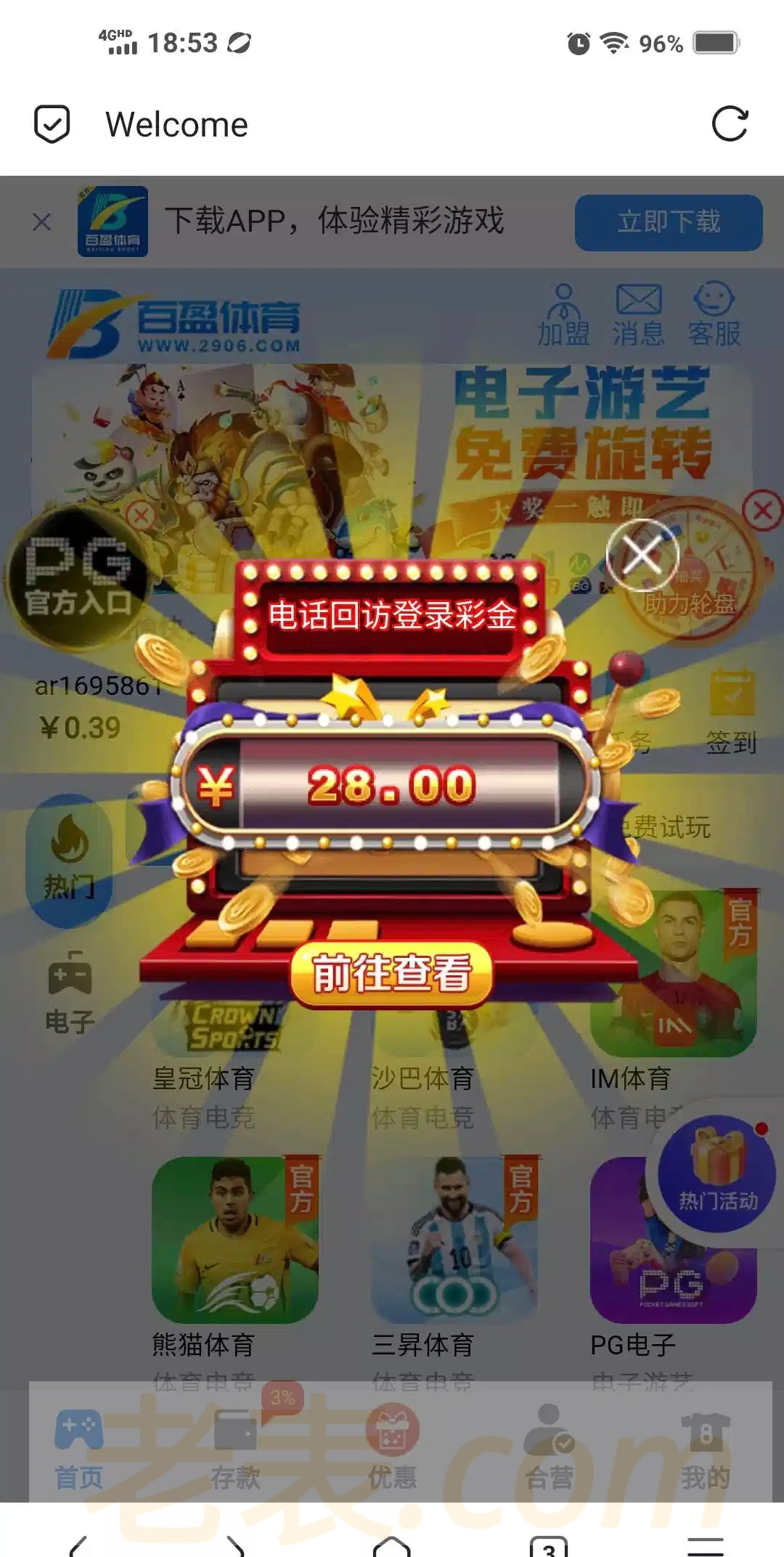 冲过一百,刚登陆自动跳出来,送了28,有号登录看看 链接2906.com