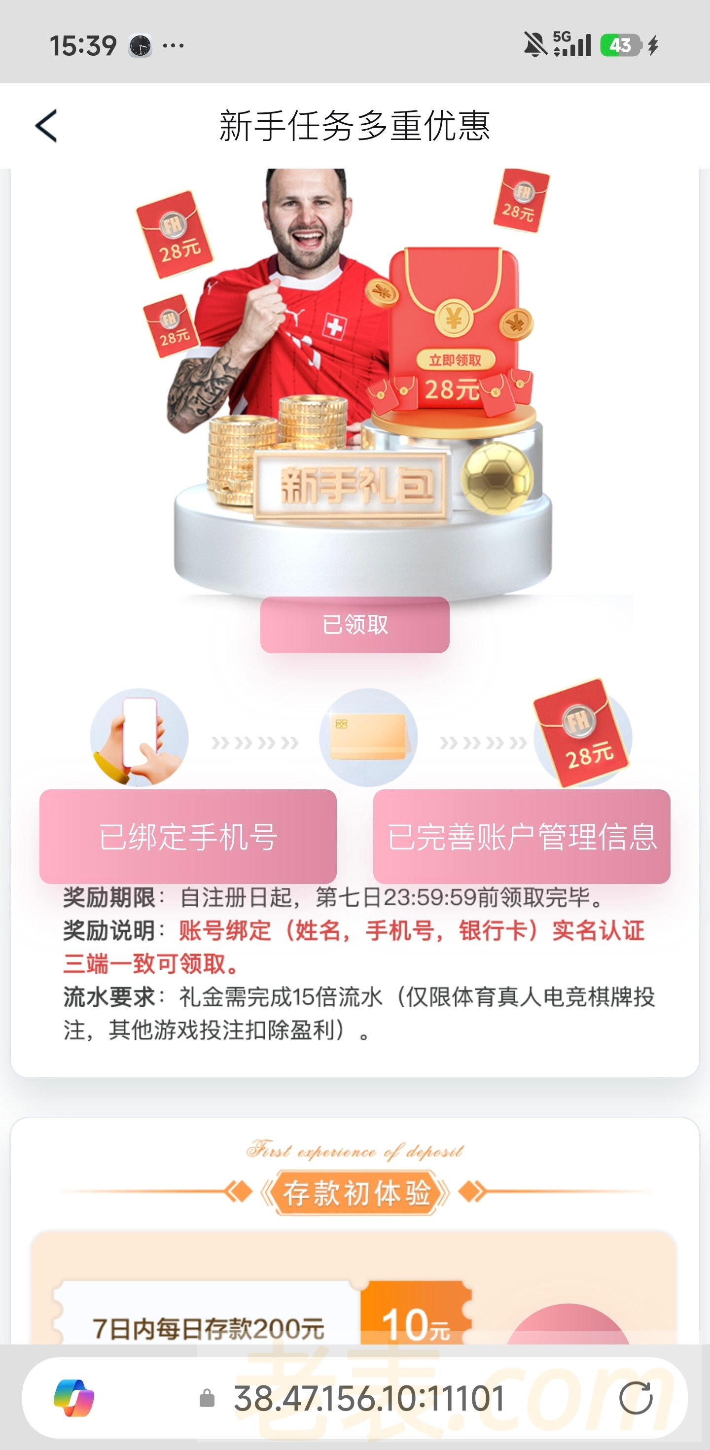 下面有投注要求,手机号,银行卡最好绑定信息一致,领取不到,联系客服刷新一下